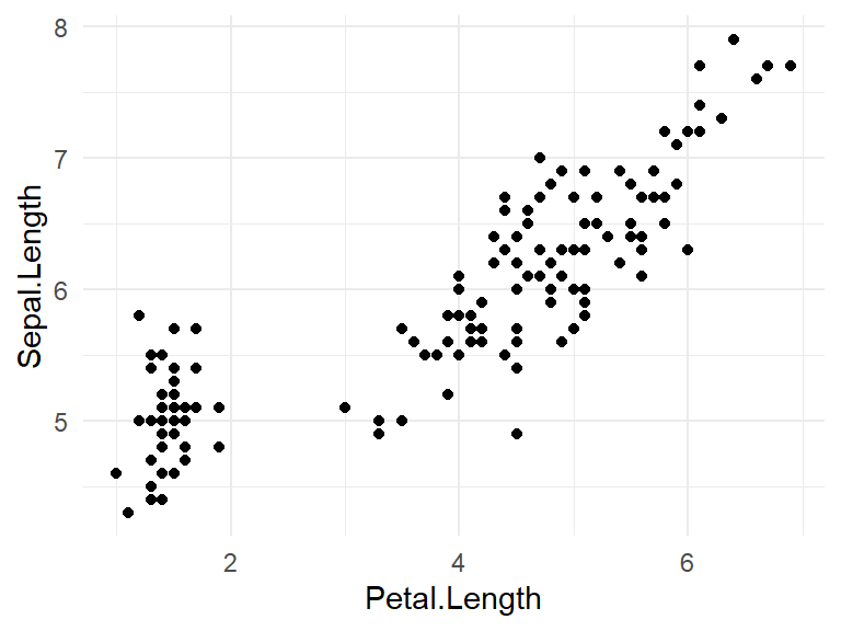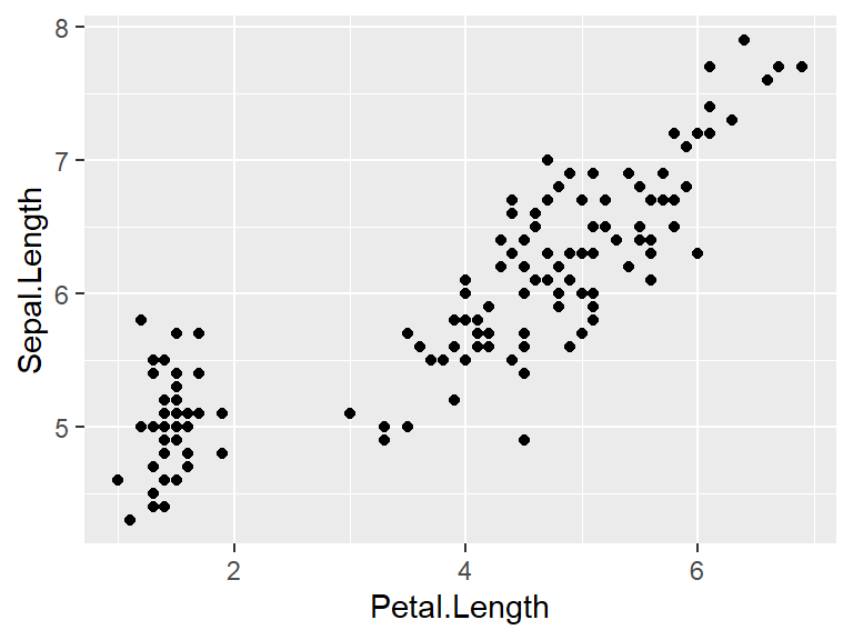 geom_point(aes(x = Petal.Length, y = Sepal.Length)) +