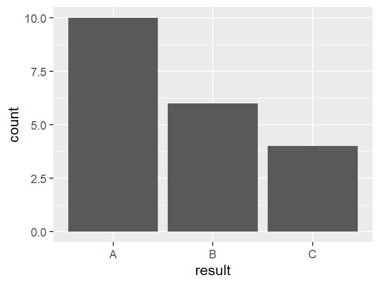 )The default statistic for geom_bar is called "count", and this just counts the number of times each outcome appears. For such a statistic, there is only a need to give one parameter to aes, which is the variable whose outcome is being counted.