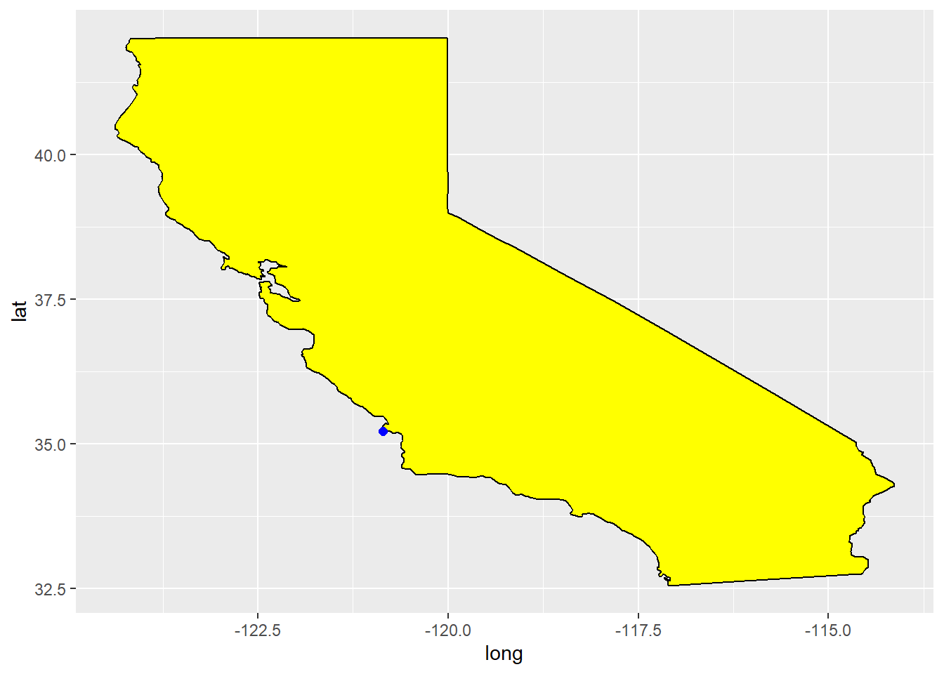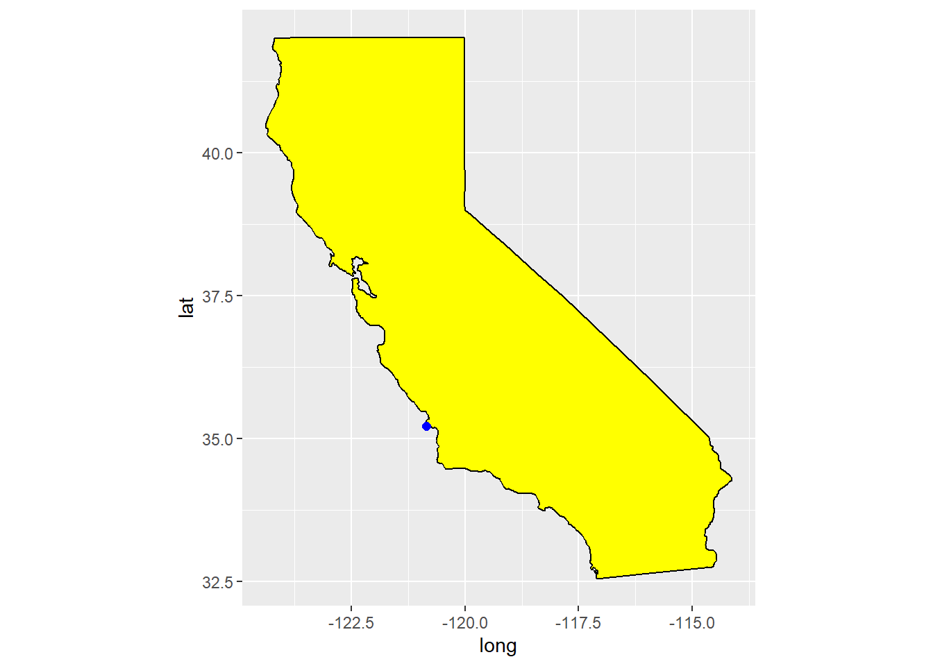 Suppose that the goal is to make a plot of the state of California with this location marked. Then the maps can be used to do this.