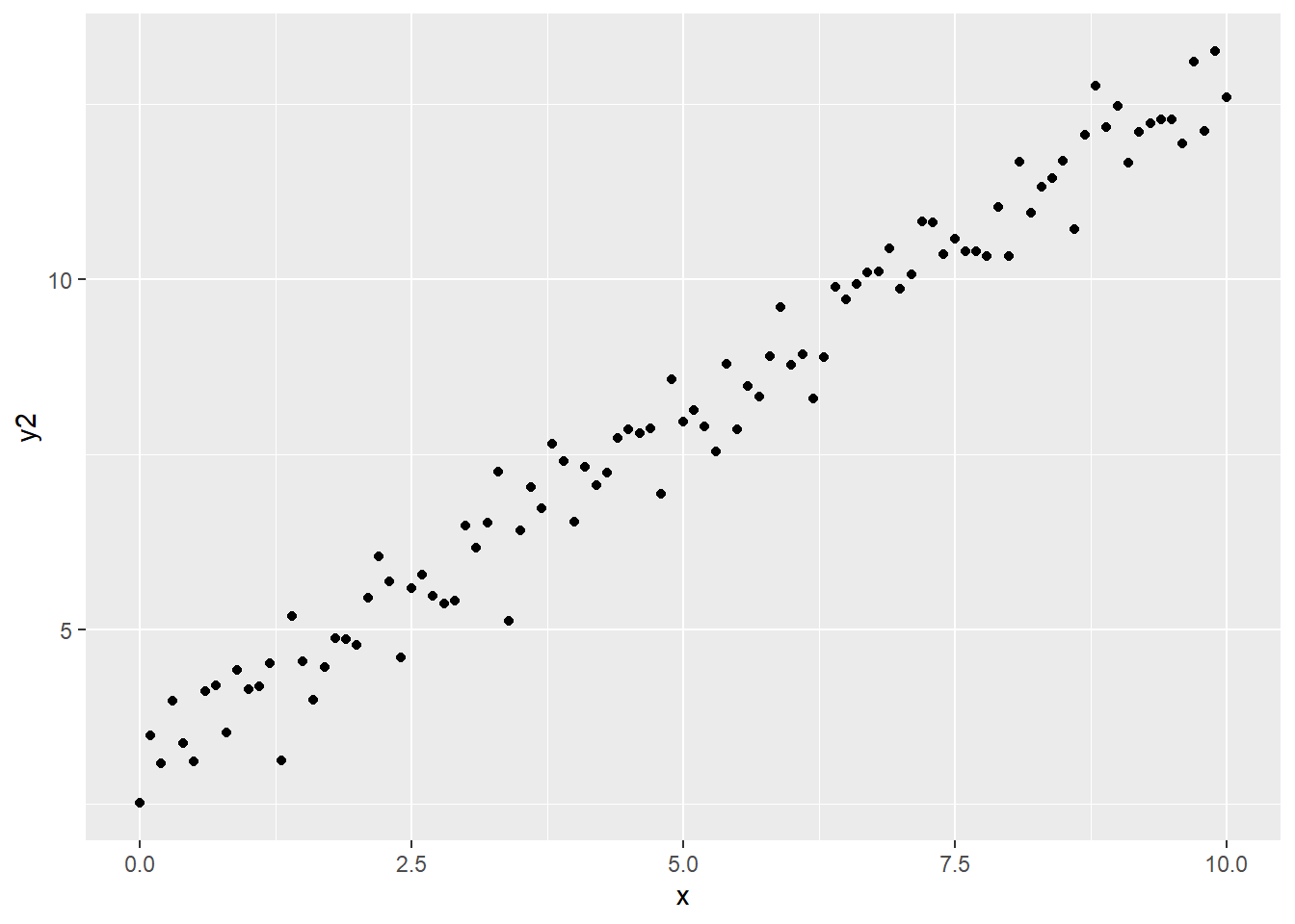 y2 <- 3 + x + rnorm(length(x), 0, 0.5)